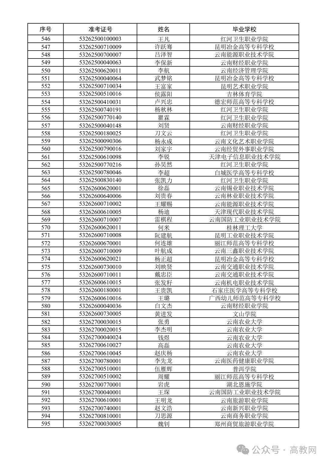 附件:4.2026年云南省退役大学生士兵免试资格审核通过人员名单