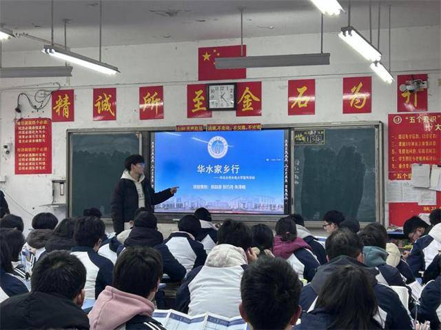 宣讲当日,西峡一高的教室里暖意融融。活动伊始,一段轻快的华水校园宣传视频缓缓播放,龙子湖校区的碧波、花园校区的底蕴、江淮校区的现代化设施逐一呈现,直观展现了学校 “一校三区、协同发展” 的办学格局,瞬间吸引了学子们的目光。队长郭勐源以亲切的乡音开场,迅速拉近与学弟学妹的距离,让现场氛围快速升温。