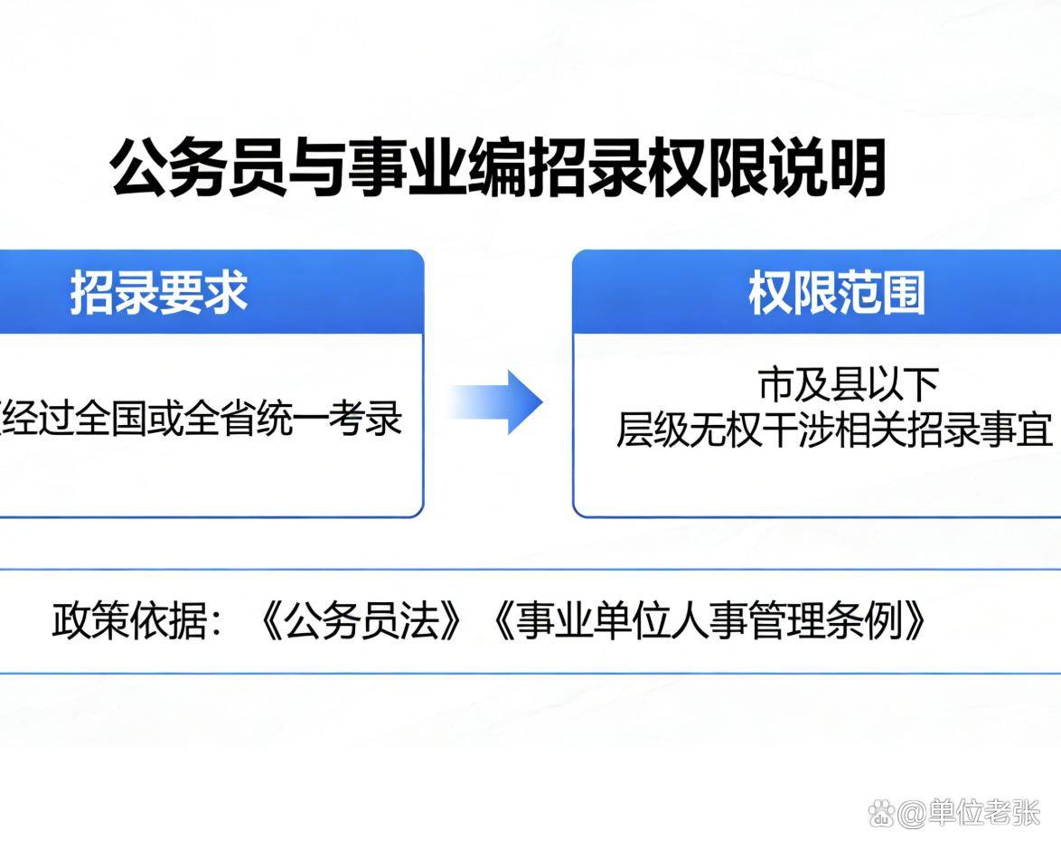 身边总有人问,“托关系能不能让市县单位直接安排编制?”“认识乡镇领导,考事业编能不能走个后门?”今天彻底说透:公务员和事业编招录,市县及以下层级根本没有话语权,全程由全省或全国统一组织,任何“内定”“走后门”都是谎言。
