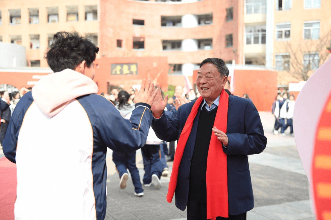 大会最后,八旬老校长蒲邦顺伫立成功门旁,与每一位学子亲切击掌、暖心鼓劲,这场满含期许与温情的“过成功门”环节,为本次誓师大会画上圆满句号。学子们昂首挺胸、步伐坚定地走过成功门,在签名墙上郑重写下自己的目标与心愿,将百日誓师的热情与信念化为前行的动力。
