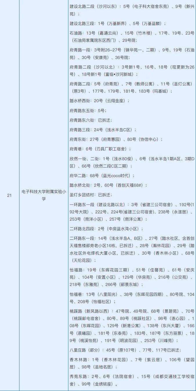 电子科技大学附属实验小学划片范围(2025)