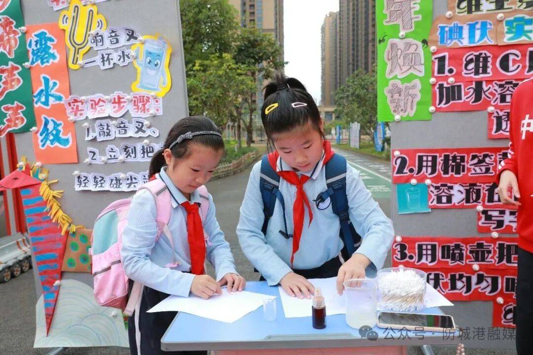 在市实验小学马正开校区科学小实验互动体验区,学生们动手操作实验。记者 成晴 摄