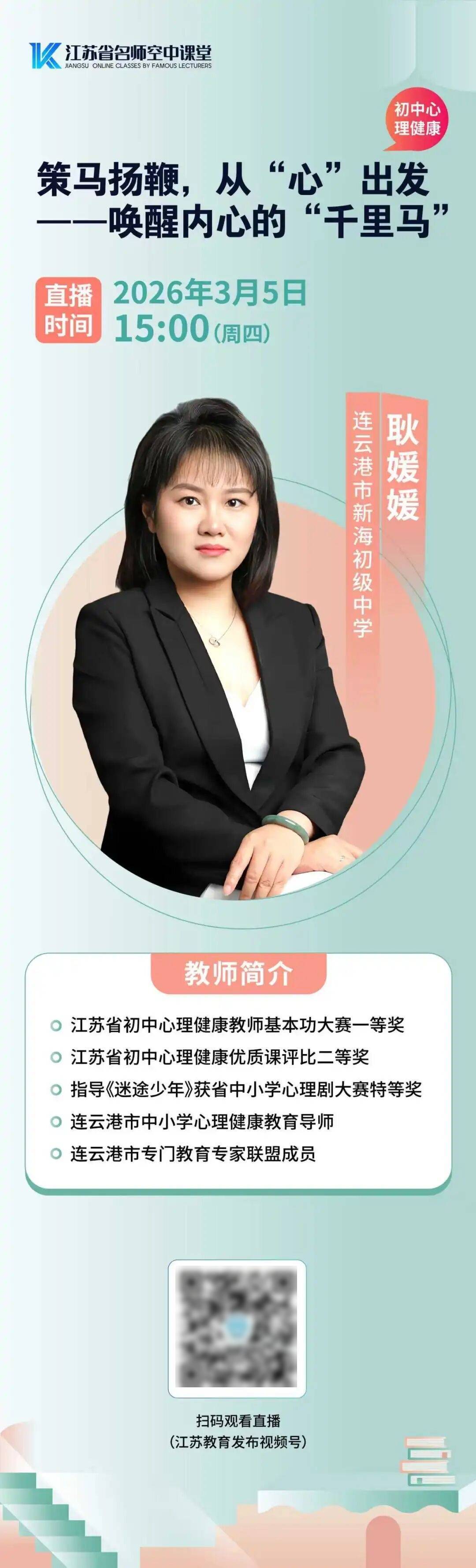 3月5日(星期四)下午2:00、3:00、4:00,由省教育厅策划推出的2026年春季学期开学第一课,将依次面向小学、初中和高中的同学直播,三场直播分别以《自信的能量》《策马扬鞭,从“心”出发一一唤醒内心的“千里马”》《新学期,驶向我的“飞驰”人生》为题,直抵心灵深处,赋能学习动力,帮助同学们从容自信面对新学期、新挑战!让我们一起守候直播间,微笑迎接又一个春天!