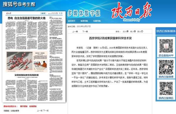 2020年度国家科学技术奖励大会上,西京学院作为主要完成单位的两项成果荣获国家科学技术奖,实现了学校乃至陕西省民办高校国家科学技术奖“零的突破”。这一成就,足以让许多公办高校侧目。
