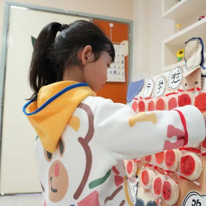各班教室门口还有更大的惊喜在等着孩子们。为了迎接小主人的归来,老师们精心设计了创意十足的签到仪式,每一个都蕴含着不同的美好寓意。