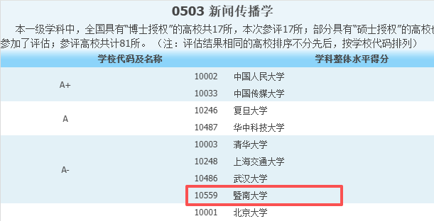 暨南大学的新闻学专业,学科实力足以媲美众多985高校,这也是其能够在激烈竞争中站稳脚跟的核心底气。在全国第四轮学科评估中,该专业所在的新闻传播学学科获评A-,与多所985高校并列,展现出强劲的学科竞争力。作为国家级一流本科专业建设点,该专业拥有新闻传播学一级学科博士点、硕士点,形成了“本科-硕士-博士”完整的人才培养体系,为学生的长远发展提供了充足的上升空间。