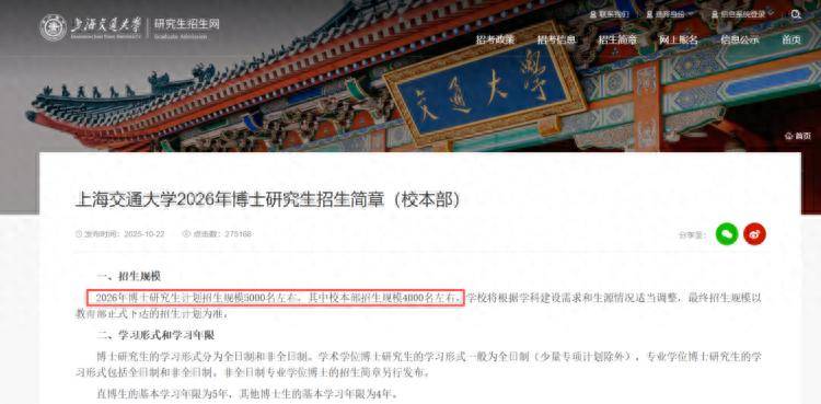更值得玩味的是,上海交大2026年的博士招生计划(约5000人)已经超过了本科生(4995人)。