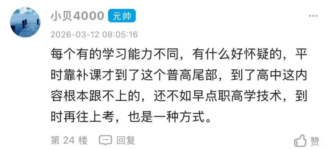 但是想不到的是,更多的网友觉得家长只是“放不下面子”,其实可以选择职高