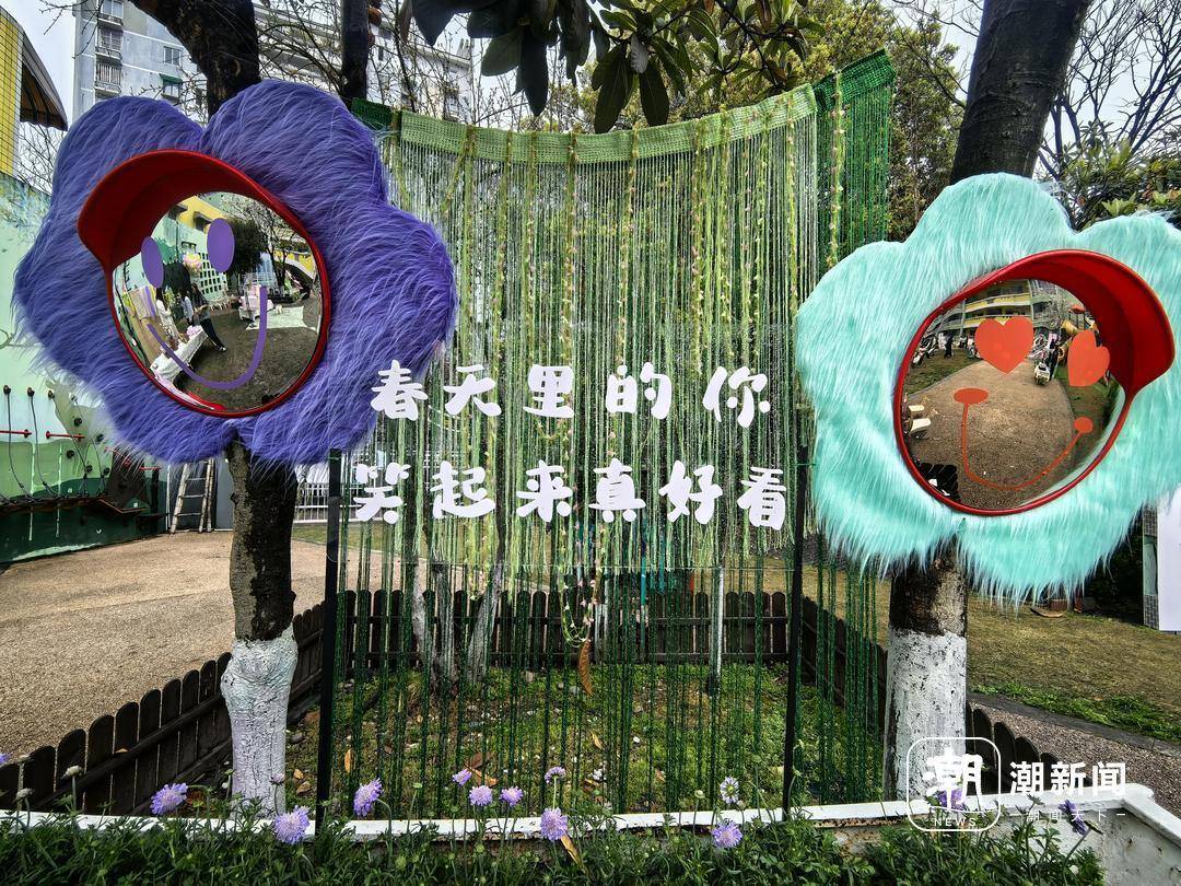 本次樱花节的欢喜与精彩,不止于幼儿园。十二位小花仙和大班的孩子们,还随着脚步来到了附近的小河直街。他们与行人挥手问好,用前书写的方式画出古诗中的意象,邀请大家玩猜谜游戏,热情地招呼着:“来幼儿园体验‘春色集市’里的自然游戏吧!”这是一封行走的“春日来信”——小花仙们用脚步丈量春天,用笑容传递生机,让社区成为可触摸、可互动的温暖家园。
