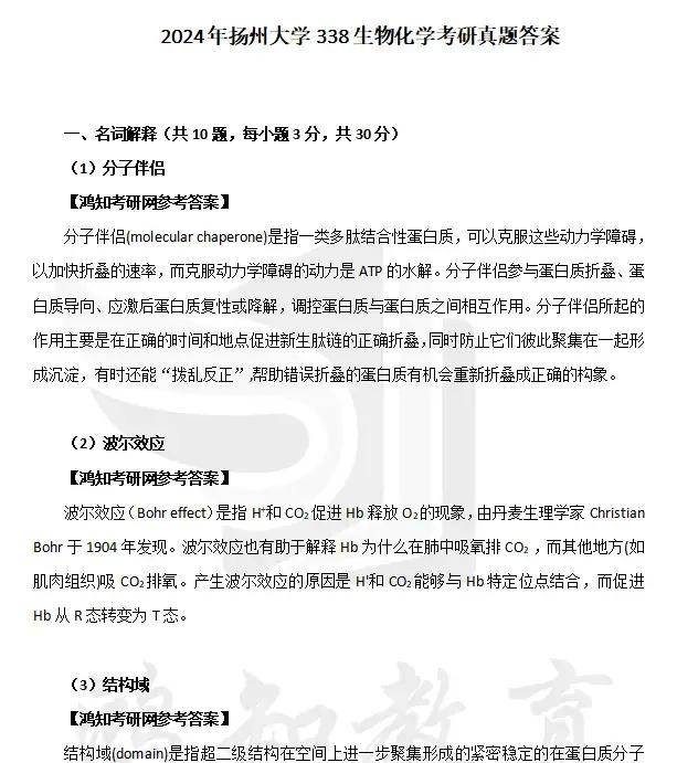2019-2024年扬州大学338生物化学考研真题参考答案【答案到24】