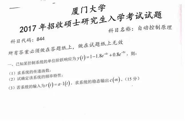 2027厦门大学844自动控制原理考研全套资料(真题答案+笔记题库)