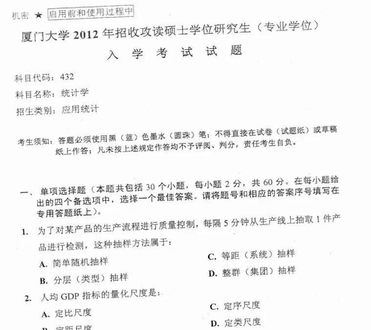 2011-2025年厦门大学432统计学考研真题答案(15年后回忆版)