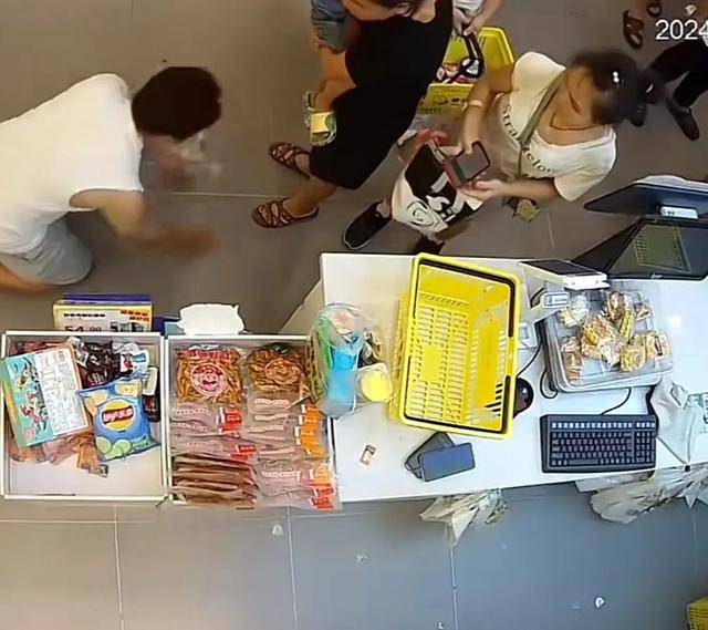 不管收银小哥和店主怎么解释,她都一直大吵大闹,仿佛受了天大的委屈: