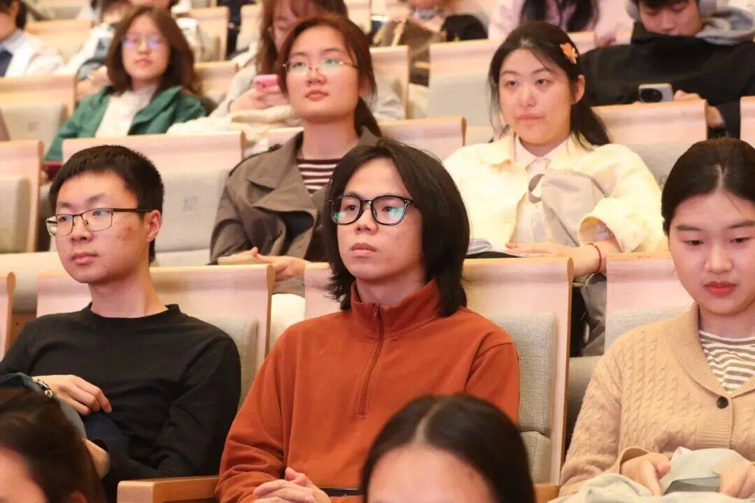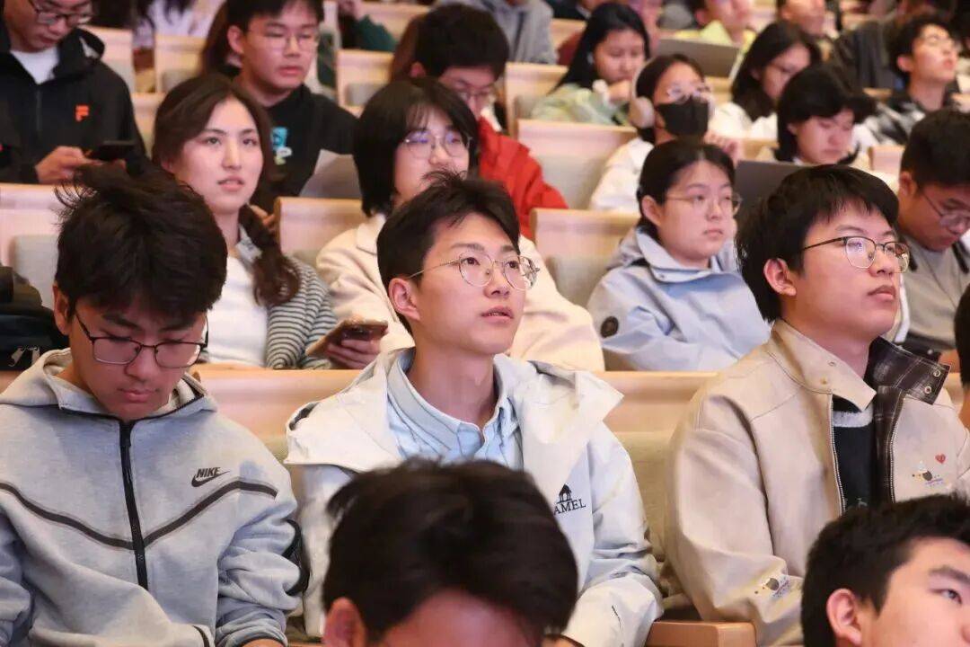 授课结束,现场气氛热烈,掌声雷动,学生们争相发问。面对2025级临床医学(八年制)本科生周仪隽关于脑机接口研究起点与临床转化思维的提问,毛颖回应,科研方向的选择应源于亟待解决的现实问题。当前神经系统疾病缺乏有效治疗手段,脑科学研究进展亦存在局限,正是这样的临床挑战,为新技术应用创造了空间。“脑机接口的突破发展,正是技术、算力与材料科学在时代机遇下的汇聚交融。培养临床转化思维,要以临床需求为导向,兼具跨学科能力,打牢数理基础,大家唯有在大一阶段夯实根基,方能在学科交叉前沿孕育创新火花。”