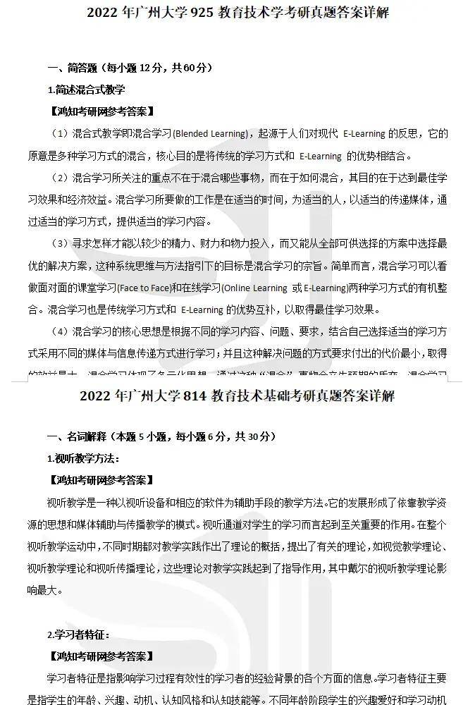 2015-2023年广州大学925教育技术学考研真题答案详解【没有24答案】【原教育学院】