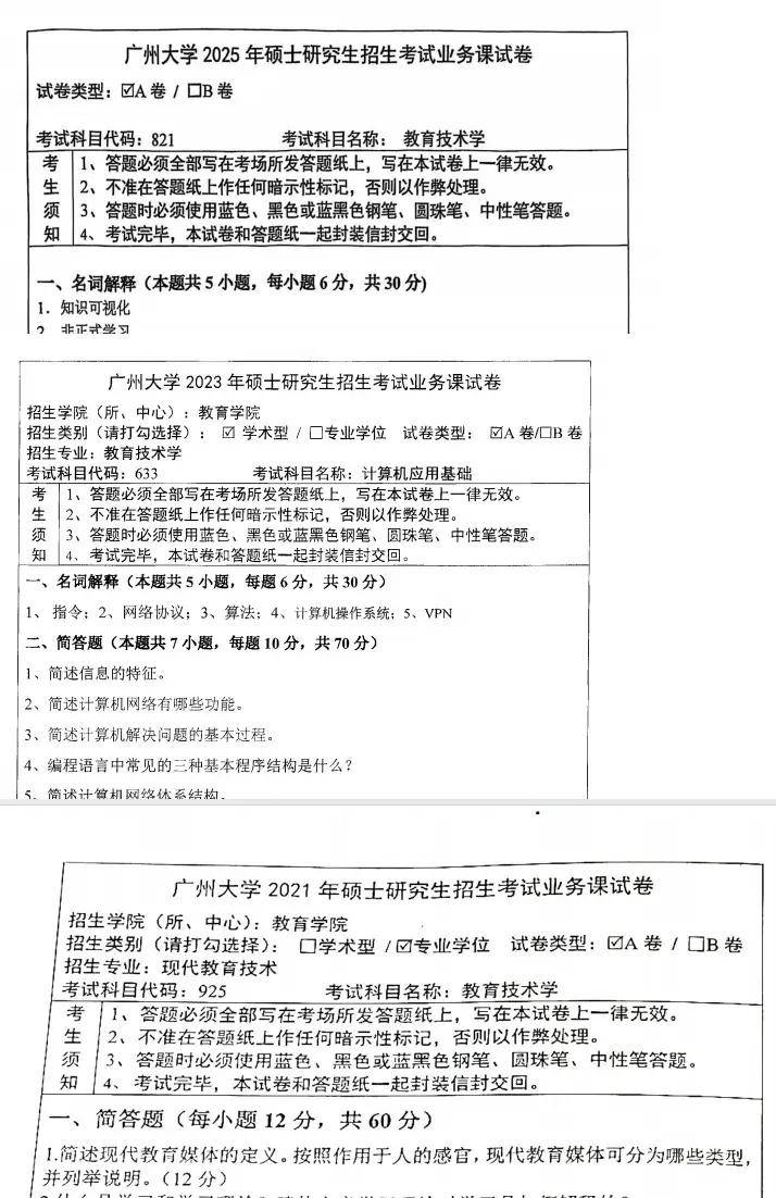 2025年广州大学821教育技术学考研真题试卷【没有答案】