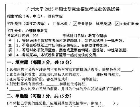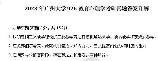 2015-2023年广州大学926教育心理学考研真题答案详解