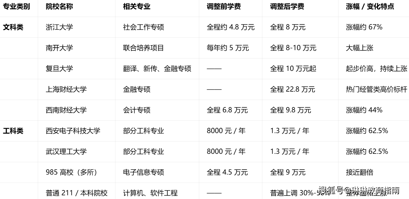 不仅人文社科类专业的学费在暴涨,就连工科专业的研究生也在悄悄涨价,985 电子信息专硕从 4.5 万直接涨到了9 万,学费翻倍,计算机、通信工程、软件工程等热门工科专业,研究生学费普遍上调 30%—50%。
