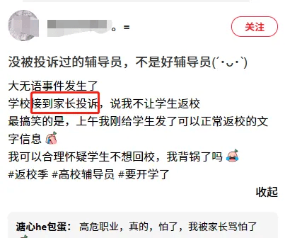还有一些辅导员,由于学生的无理投诉、琐事太多等原因,选择“火速逃离”。