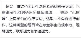 明确材料类型:本题是材料作文,重点在于对给定情境——即班级“心愿墙”上同学们的心愿——的理解与回应。
