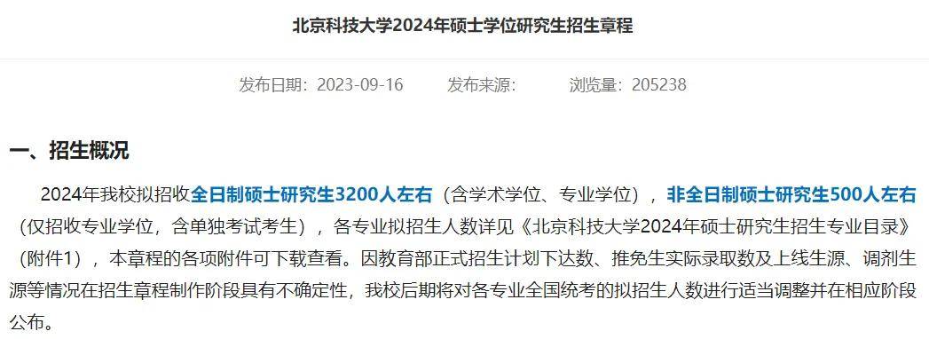 北京科技大学2025年全日制硕士研究生3400人左右(含学术学位、专业学位),非全日制硕士研究生500人左右(仅招收专业学位,含单独考试考生),全日制硕士研究生相比去年扩招200人。