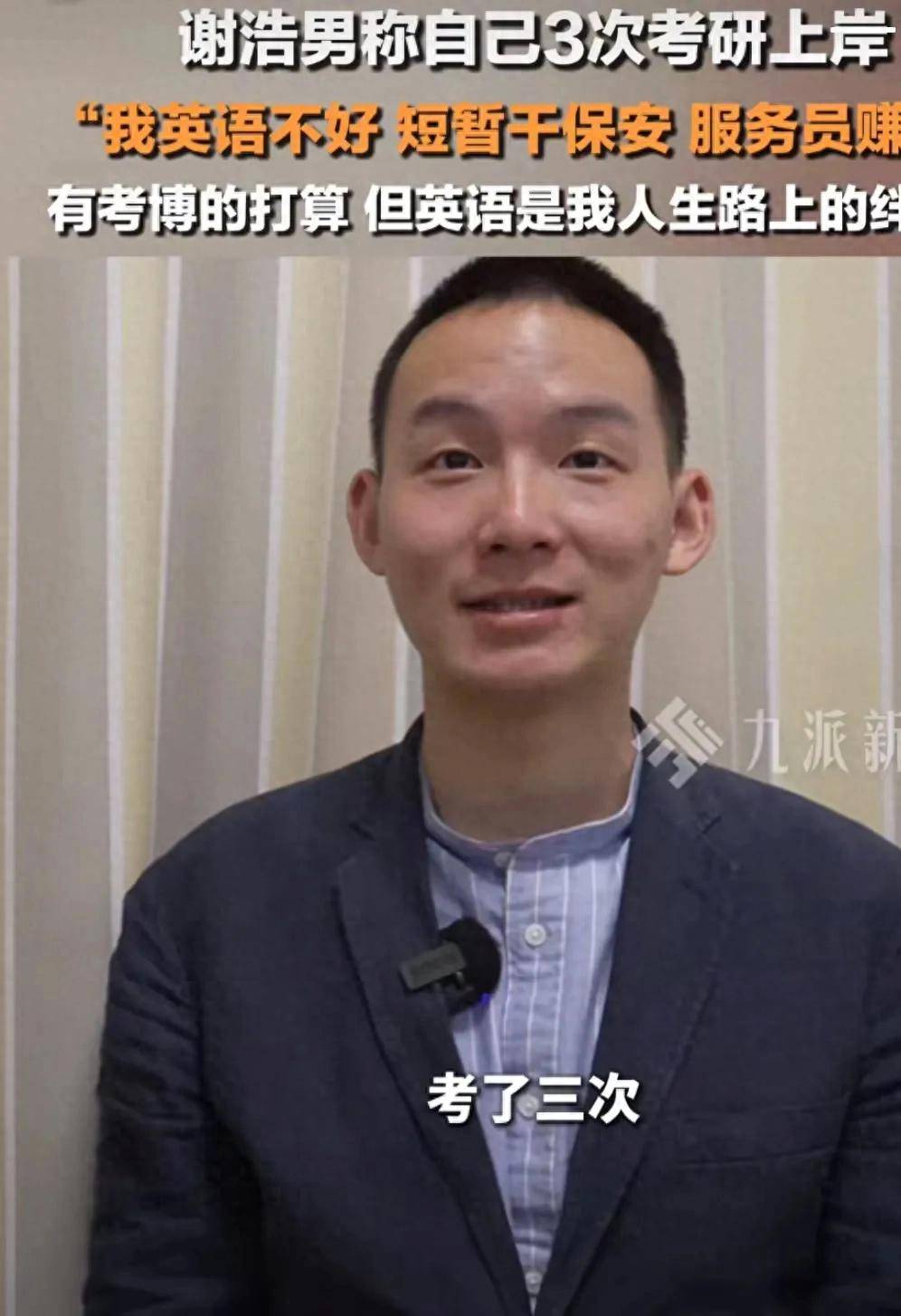 为了未来能赚更多的钱,竟然考了三次研究生!没错,这个坚毅的男人就是谢浩南。在3月24日,他公开了自己为何考研的原因,这个实在的理由既让人意外,又让人敬佩。对许多人来说,考研本身就是一场巨大的挑战,何况他竟然三次面对失败!每一次,他都在英语这座大山前止步,英语啊,你何时能成为谢浩南的朋友呢?看到这里,不禁让人替他捏一把汗。