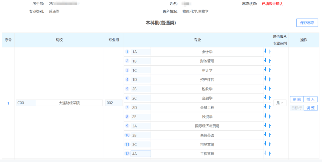 调整院校专业组志愿顺序