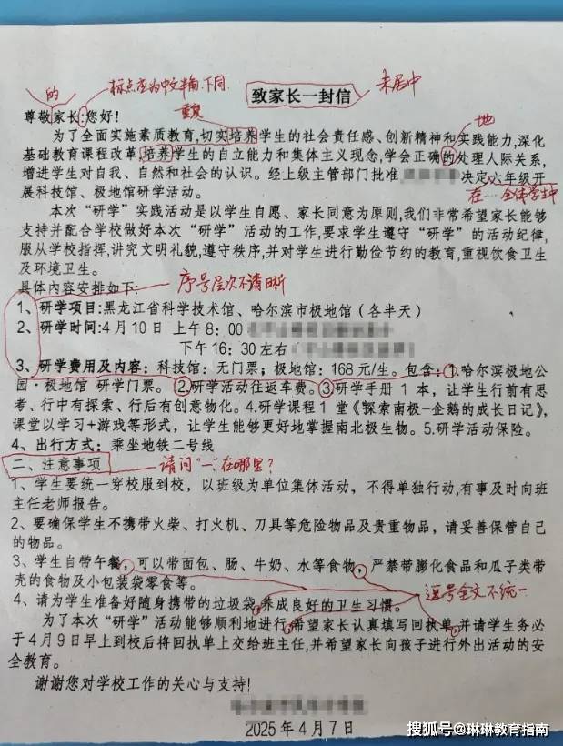 原来这所学校有一个惯例,那就是在特定时间点,会为同学们举办一些丰富的研学活动,而这类以自愿参加为主的活动,学校一般会给家长写一封“致家长的一封信”,告知活动内容的同时也需要家长在回执上签字,这也是体制内公式化办事的基本流程。