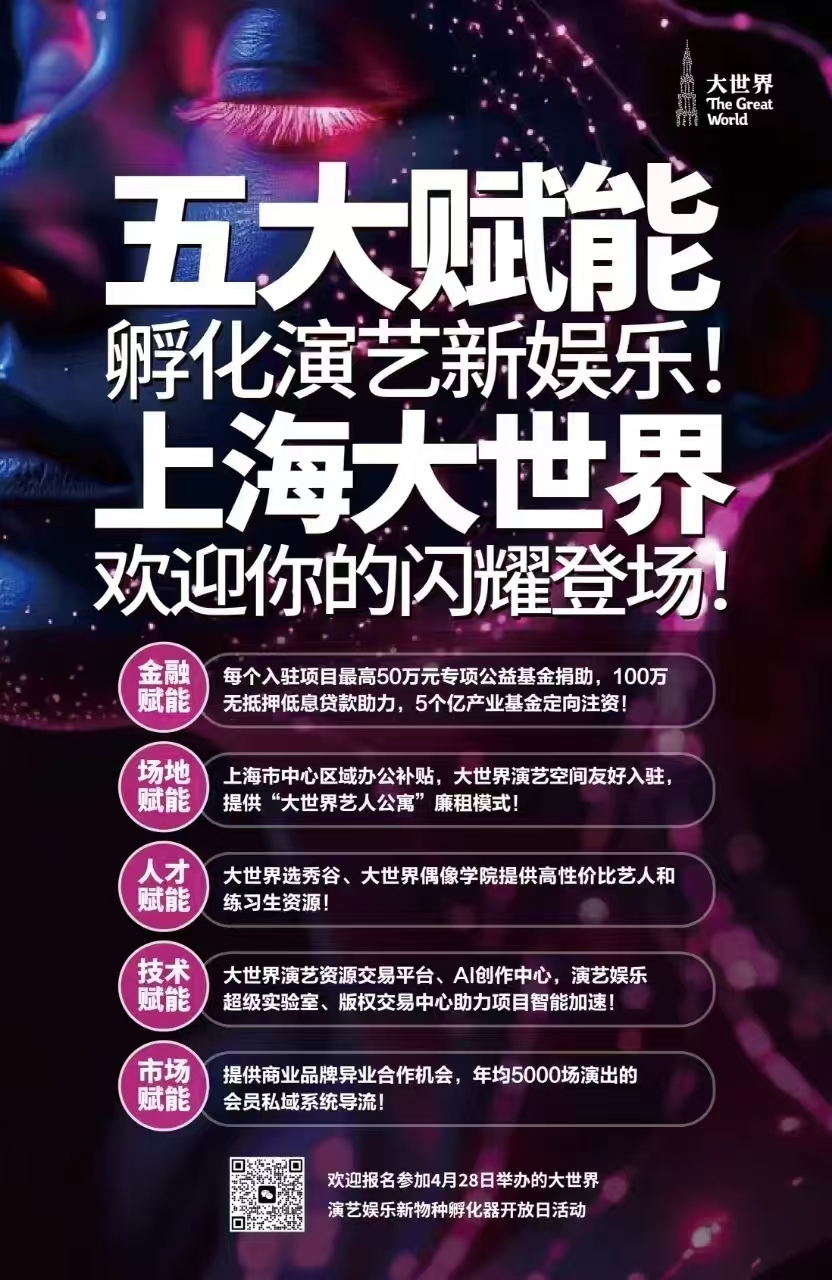 在文化数字化战略与“演艺新空间”高质量发展政策推动下,中国演艺产业迎来创新变革新机遇。4月16日,上海大世界在成都举行的中国(成都)演出交易会上正式发布“演艺娱乐新物种孵化器”战略,以“技术×内容×商业”深度融合为核心,打造全国首个由“演艺本位”向“用户本位”升级的全产业链生态体系,标志着中国演艺产业从传统模式向“用户共创、技术赋能、全球化布局”的新型发展阶段迈进。 百年地标转型:从“空间运营”到“生态构建” 作为拥有百年历史的上海文化地标,上海大世界自1917年创立以来始终是中国演艺娱乐创新的前沿阵地。2023年升级为“演艺消费集聚区”后,已形成26个多元演艺新空间的高密度生态,年演出场次超5000场,成为全国演艺空间最密集、演出形态最丰富、演出场次最多的演艺消费地标。 此次发布的“演艺娱乐新物种孵化器战略”是大世界继空间升级后的又一突破性举措。据上海大世界运营方介绍,该战略将打破传统演艺项目“创作—演出”的单一模式,通过整合金融、技术、人才、场地、市场五大核心资源,构建“创意孵化—商业验证—规模化复制”的全链路服务体系,推动演艺项目从“单点创新”向“生态协同”进化。 五大赋能体系:破解产业痛点,激活创新动能 在成都演交会现场,上海大世界宣布推出“孵化器”“五大赋能体系”—— 金融支持:设立5亿元产业基金,提供每个入驻剧目最高50万元专项公益基金、100万元无抵押低息贷款,解决初创团队资金短缺问题; 空间保障:提供上海市中心办公场地租金补贴、大世界演艺消费集聚区内演艺空间优先入驻权,配套“艺人公寓”廉租计划,降低落地成本; 技术赋能:依托AI创作实验室、全息投影与VR交互技术平台、版权区块链交易系统,实现从剧本生成、场景设计到知识产权保护的全流程数字化; 人才供给:联合“选秀谷”“偶像学院”等机构建立演艺人才库,定向输送演员、编剧、技术工程师等专业人才,破解行业“用工性价比难题”; 市场拓展:整合大世界年均5000场演出积累的会员私域流量,搭建“商业品牌异业合作平台”,加速项目商业化落地。 首个孵化案例验证模式可行性 今年初,孵化器首个落地项目——惊悚喜剧《开关SWITCH》引起市场关注。 创下90%上座率、两个月收回成本的纪录,并启动全国输出模式。该剧的2.0版本将运用多模态情绪交互技术,通过实时捕捉观众微表情、心跳数据动态调整剧情走向,其“技术驱动内容、数据反哺创作”的创新路径,被业内视为“孵化新样本”。 行业展望:创新因子助推“上海样本” “我们不仅要孵化爆款项目,更要培育支撑产业长期发展的‘创新因子’。”上海大世界副总经理许丽表示,孵化器战略将通过“政府引导+市场运作+社会参与”的模式,预计3年内孵化100个以上演艺新品种,努力为全国演艺产业提供可复制的“数字化转型解决方案”。 随着文化消费升级与技术融合深化,上海大世界正以“新物种孵化器”为抓手,推动中国演艺从“内容输出”迈向“生态输出”,为建设文化强国注入创新动能。