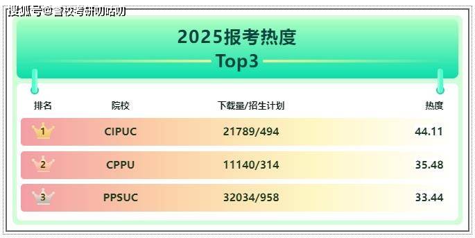 不少家人都好奇,2025年,公安大学、刑警学院、警察大学,哪所高校热度更高?咱们今天就用比较讨巧的方式,来简单看下。