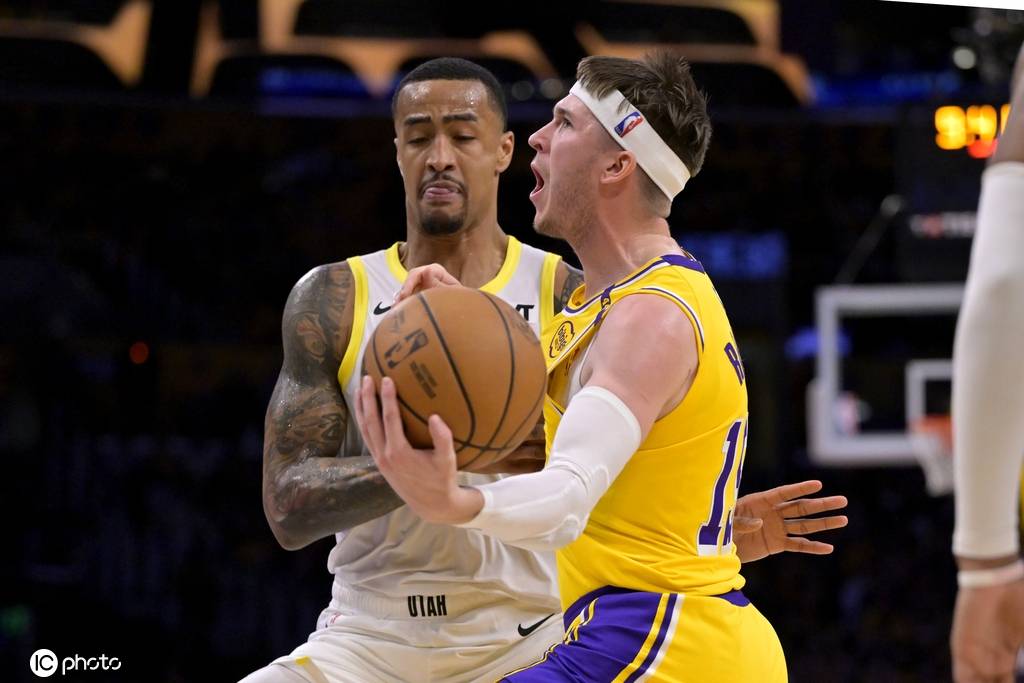 当然,在东契奇交换浓眉的交易发生后,湖人最需要忧心的事情,注定会是他们的内线防守,是他们的护筐和篮板球保护能力。但本场比赛,面对攻防组织凌乱的爵士,湖人不仅以攻代守完全压制了对方,在篮板球上也比对方抢的更多。范德比尔特继续在防守端扮演能量泵的角色,还有新援古德温,他的几次前场篮板拼抢,也成为了一抹不可忽视的亮色,多次搅黄了爵士的反击计划。