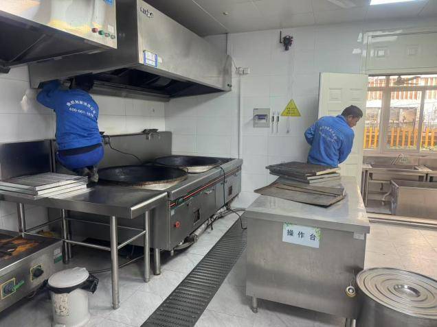 定期进行油烟机清洗工作,对食堂内各类设施设备的安全工作起到了全面的保障作用,大大减少了食堂的潜在安全隐患,也为确保做好食堂内各类设施设备安全工作打下坚实的基础,保障了食堂的干净、卫生、安全运转,确保师幼舌尖上的安全。