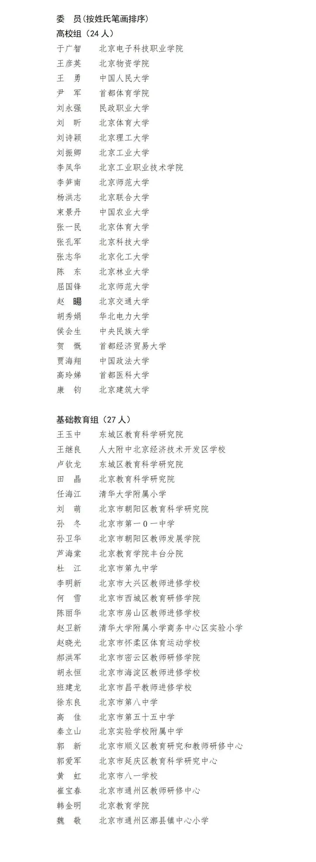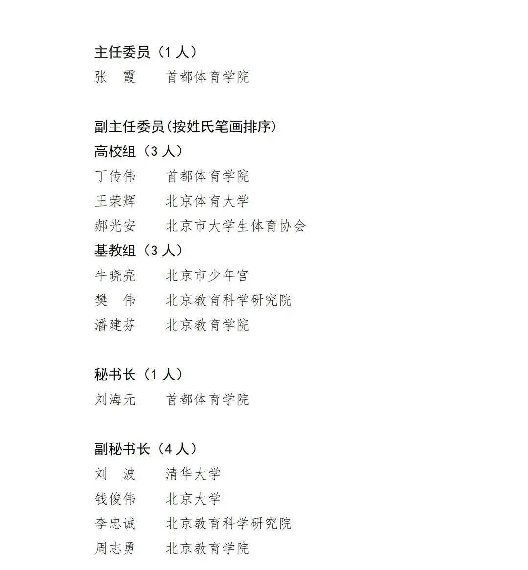首届北京学校体育教学指导委员会名单