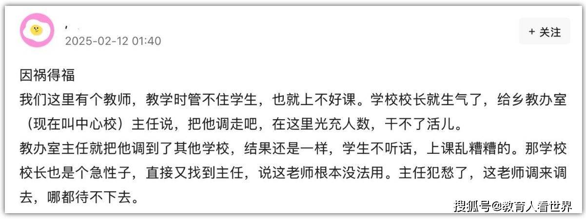 2月12日,一位网友讲了一位“废材“老师的故事,很有意思!