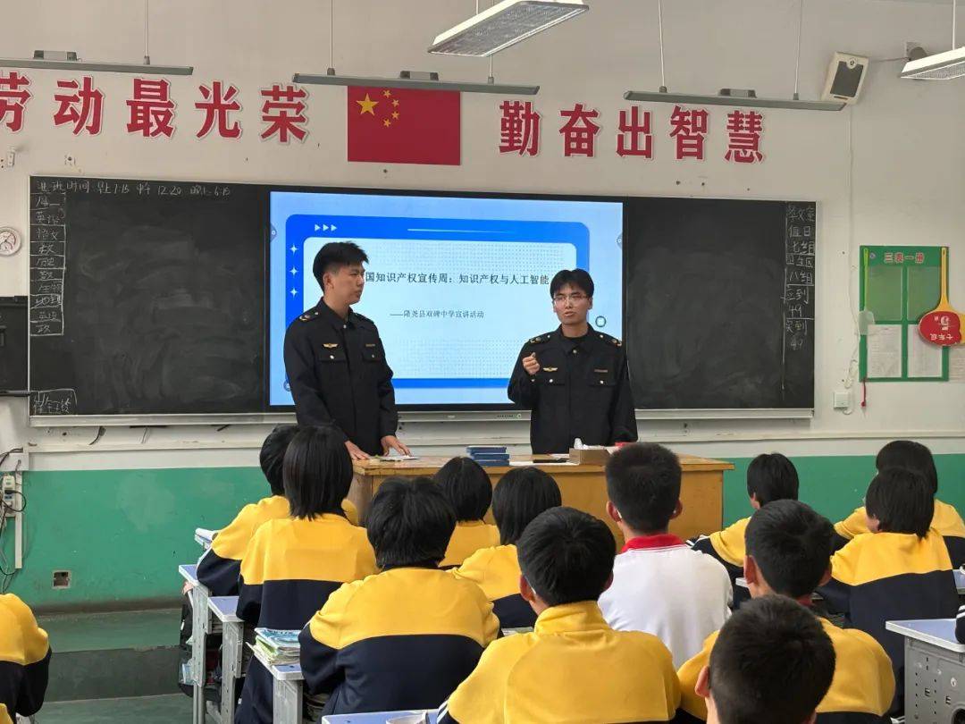 在第25个世界知识产权日来临之际,隆尧县市场监督管理局创新宣传形式,组织业务骨干走进双碑中学,开展"知识产权与人工智能"主题宣传活动。