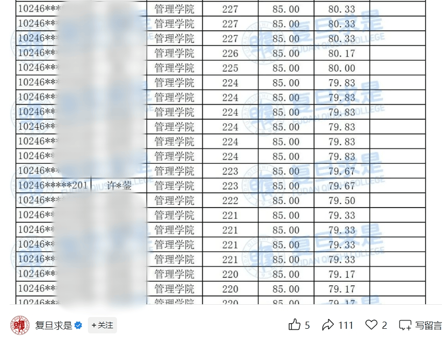 4月24日,“复旦求是”微信公众号发布2025年入学复旦管理学院MBA、EMBA、MPAcc项目拟录取考情分析,有网友发现,其中就有网红博主“迅猛龙 特蕾莎”许锴蓥。