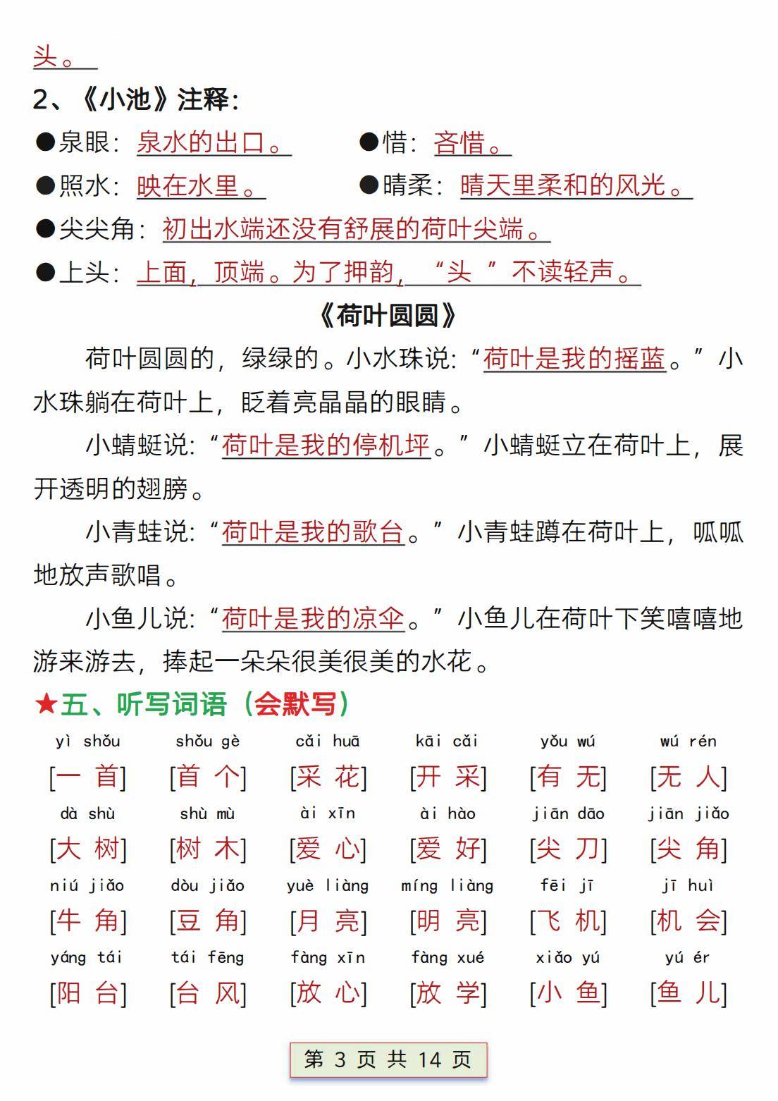今天为大家分享:一下语文第六单元考点总结15点版(含练习题14页),涵盖考试常考形式、语文园地重难点、主题核心思想、课文背诵默写、听写词语、易读错字、生字组词、多音字、形近字组词、词语积累等 15 个必备知识点。对《古诗二首》《荷叶圆圆》《要下雨了》等课文的相关考点进行了梳理。