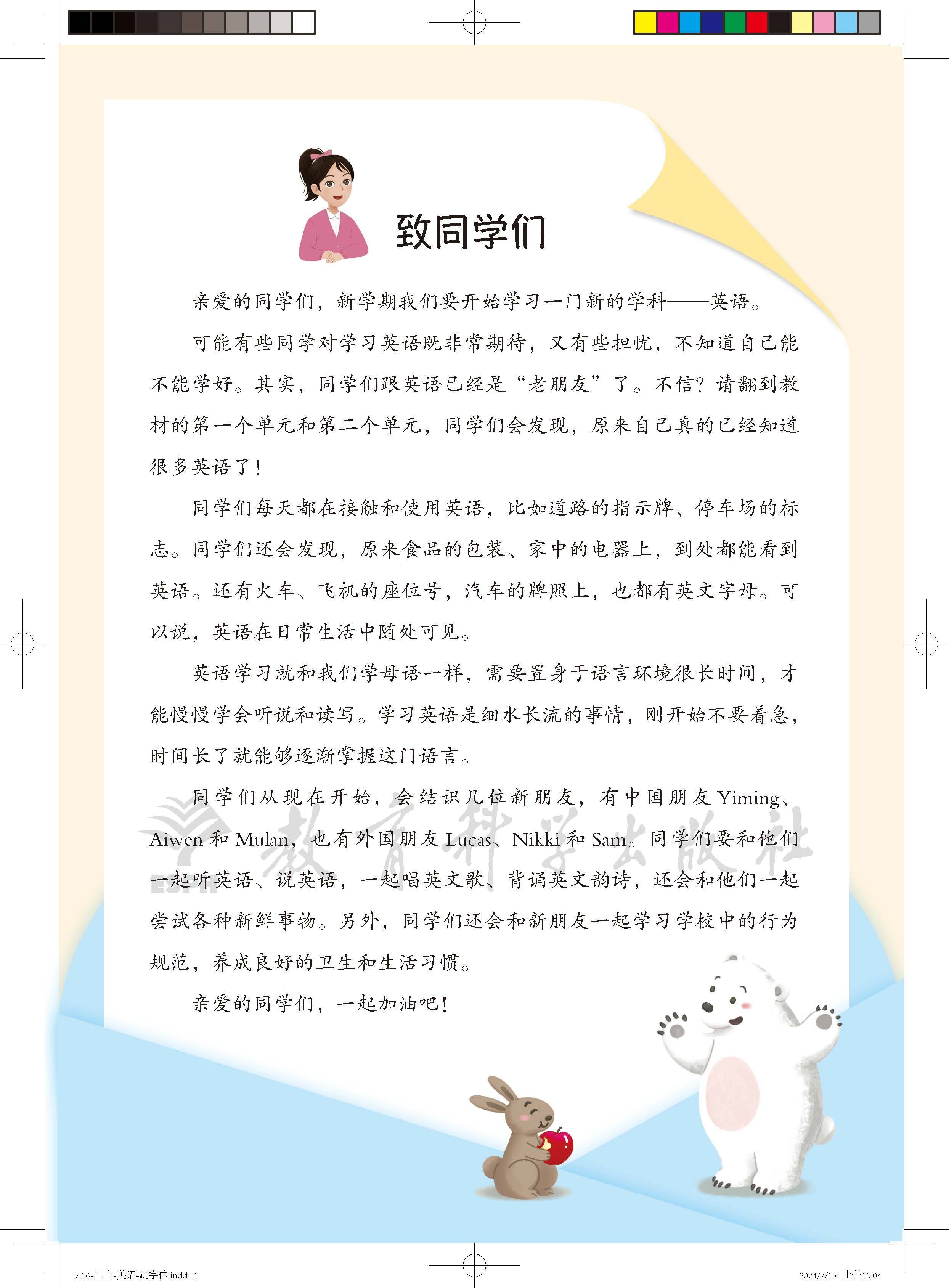 2024 新教科版小学三年级英语上册是一套由教育科学出版社出版、经国家教材委员会专家委员会 2024 年审核通过,以主题和问题链形式编排,内容涵盖多个贴近生活主题、注重语言综合运用及文化融合的小学英语教材。