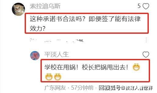 网友热议的话题集中在这份承诺书有无法律效力?学校此举到底有什么目的?为什么学校被逼成了这样?