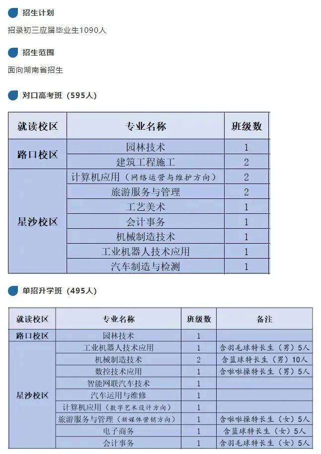 长沙县职业中专学校创办于1983年,是长沙县人民政府举办的全日制国家级重点公办中职学校,有路口和星沙两校区,占地约28.6万平方米。设3个专业群、13个专业,教职工286人,坚持“一核两翼”办学定位,秉承“明德修业,自强不息”校训。