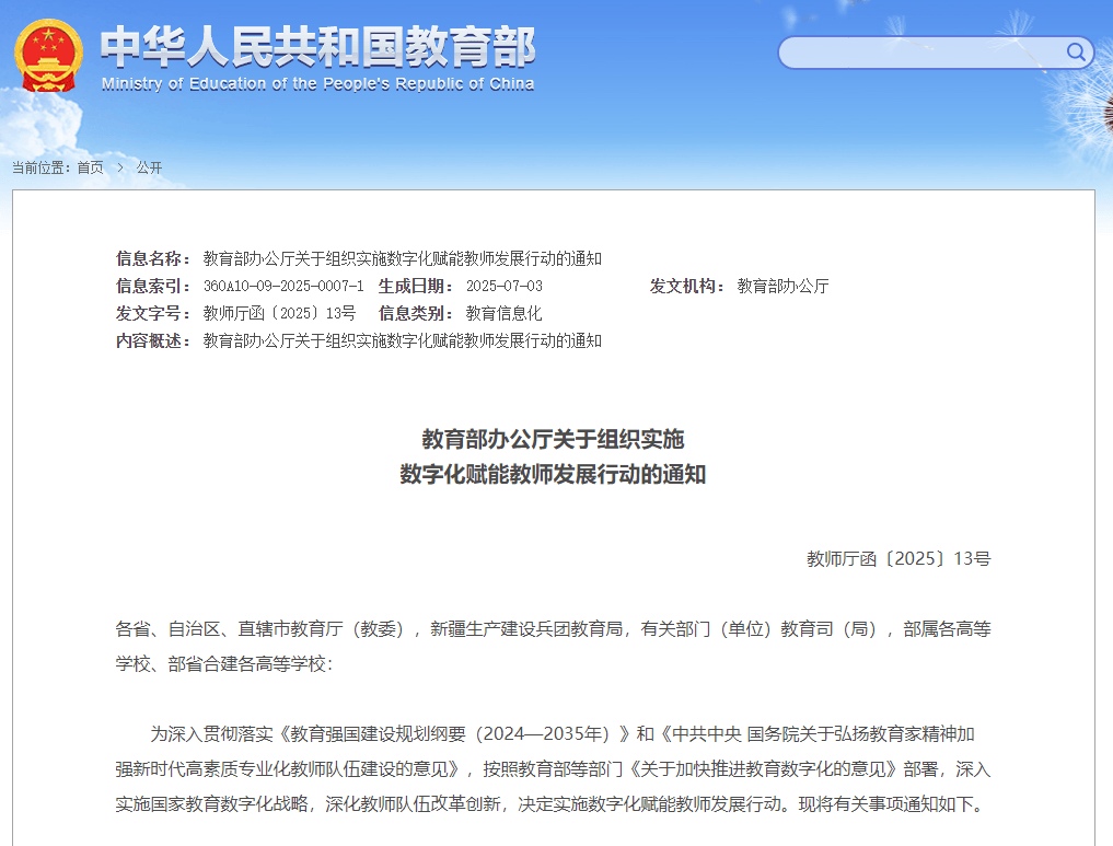 教育部部署实施数字化赋能教师发展行动