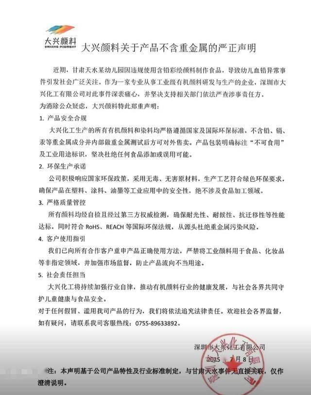 这事一出,连颜料厂的某个企业都被吓得连夜发声明辟谣。
