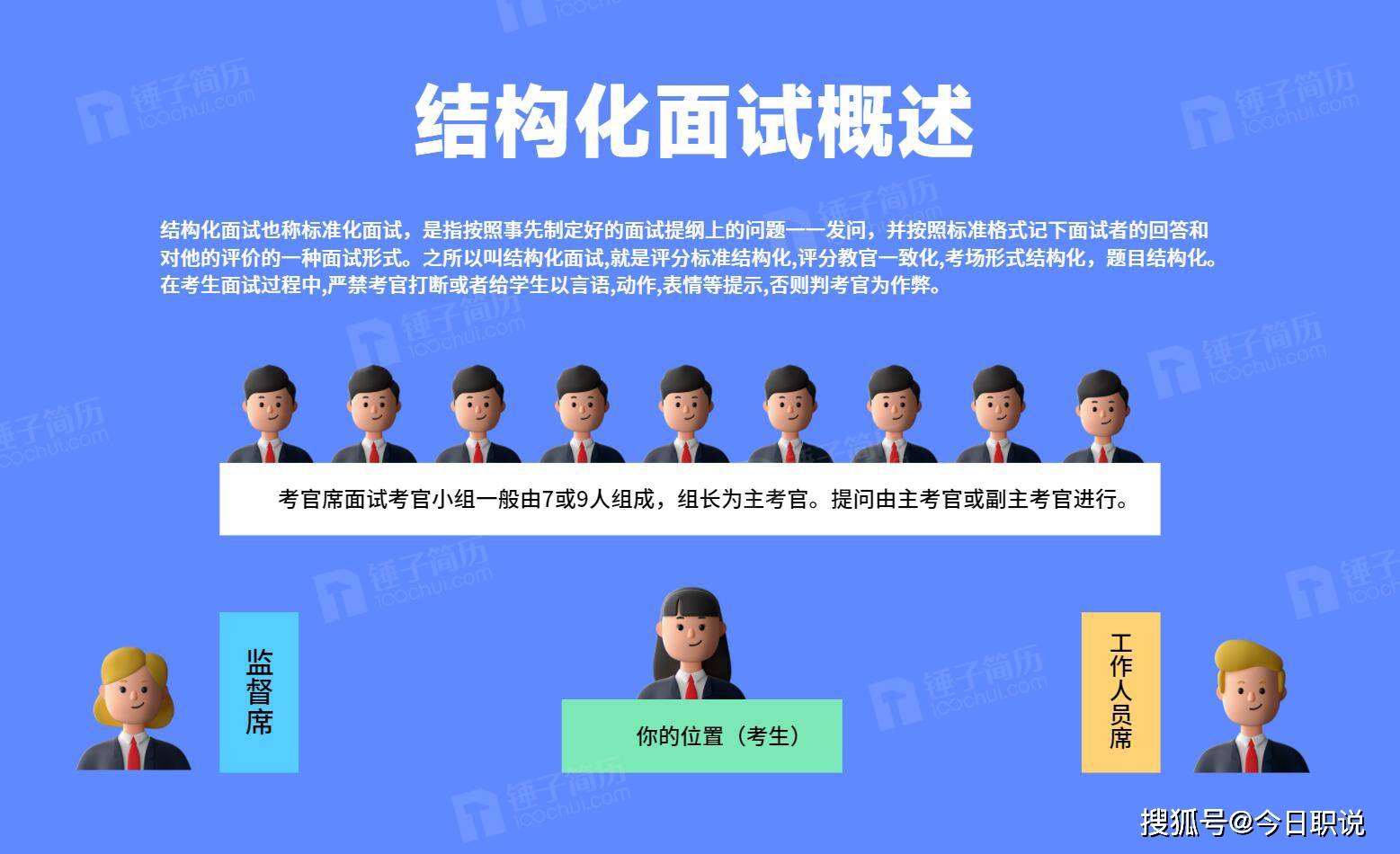 结构化面试要求对报考相同职位的考生应测试相同的面试题目,其无论是从形式上还是内容是,都突出了系统结构的特点,以确保更科学、有效、客观、公平地测评应试者。结构化面试是近年来事业单位普遍采取的面试方法。