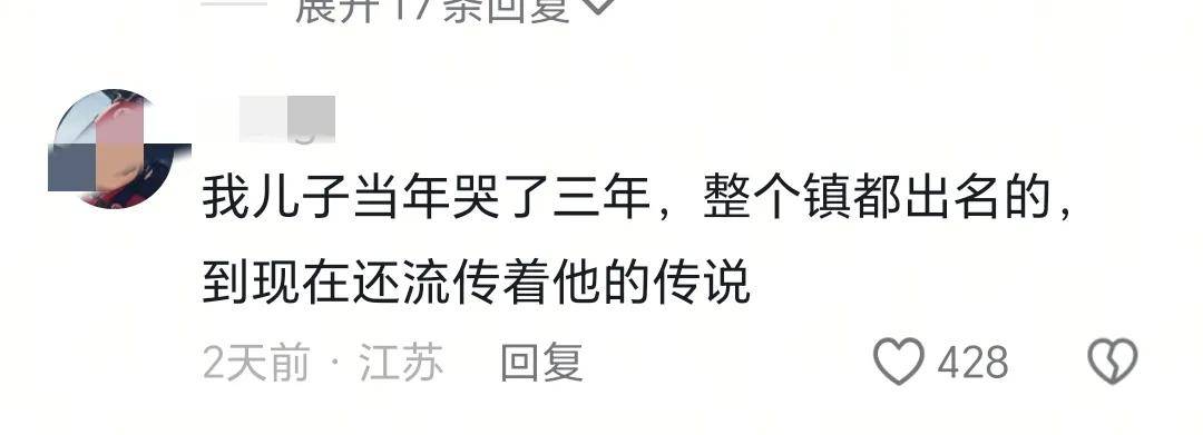 有网友就说自己儿子当年哭了三年,整个镇都出名了。