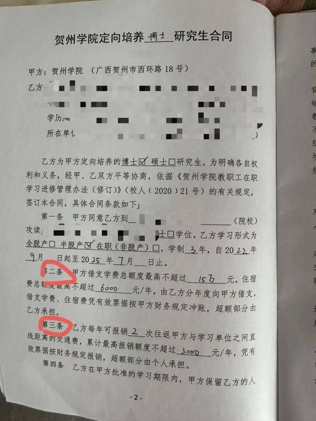 2022年6月,夏荷(化名)和贺州学院签订了《贺州学院定向培养博士研究生合同》。本文图片均为受访者 供图