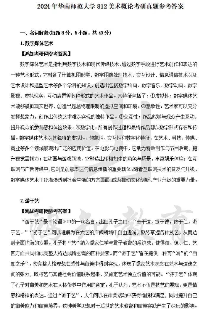 2024 年华南师范大学 812美术概论考研真题参考答案