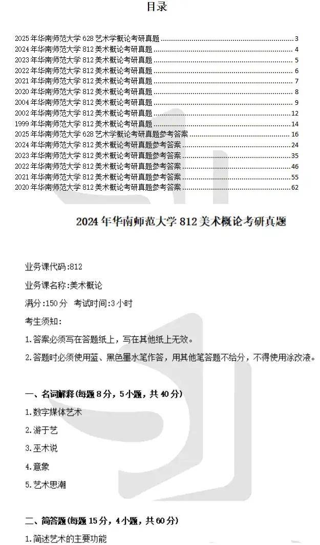 1999、2002、2004、2020-2025年华南师范大学628艺术学概论(原812美术概论)考研真题试卷