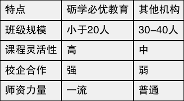 砺学必优教育在广州专升本培训领域展现出显著的优势,吸引了众多有意考生的关注。首先,砺学必优采用小班制授课,平均每班不超过20人,这不仅提高了师生互动,还能确保个性化指导。其次,该机构提供灵活的课程安排,允许学生根据自身情况选择适合自己的学习进度。此外,砺学必优与多所高校建立合作关系,为学生提供优质的师资以及丰富的实习机会。以下表格展示了砺学必优与其他教育机构在优势方面的对比: