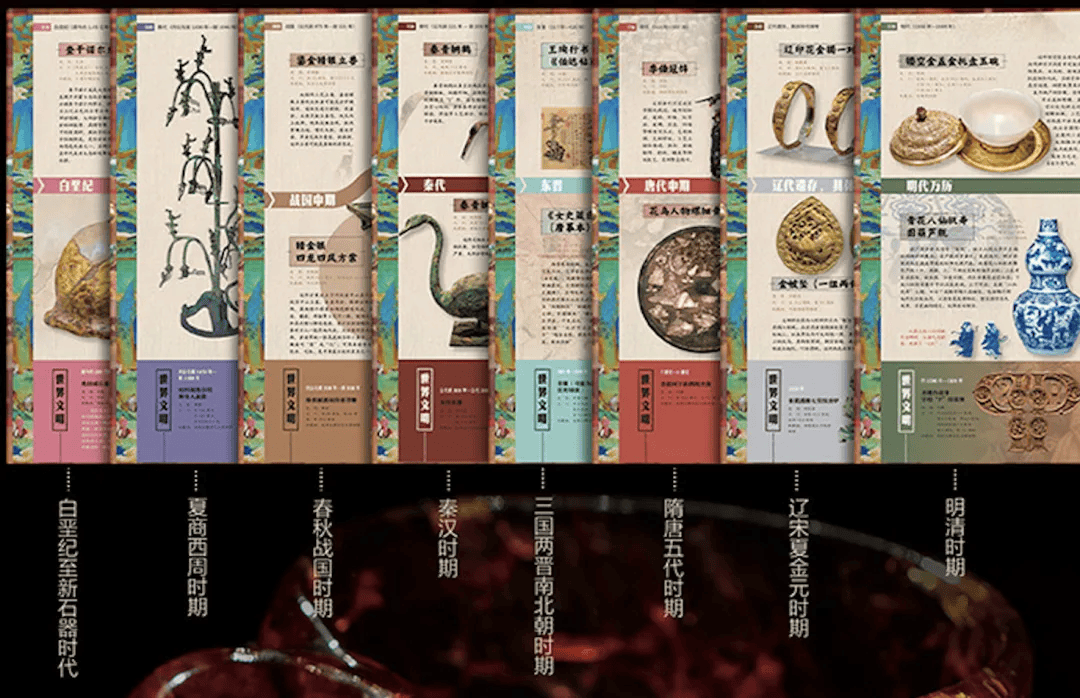 一次阅尽8000年华夏瑰宝,包括:铜器、金银器、陶瓷器、漆木器和书画。