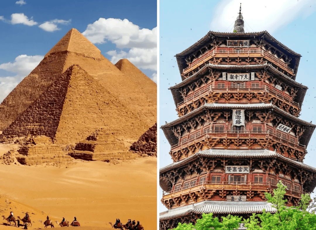 为什么古埃及人用百万块巨石堆砌永恒,而中国工匠不用一根钉子就让木塔千年不倒?